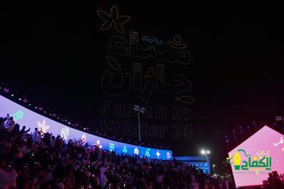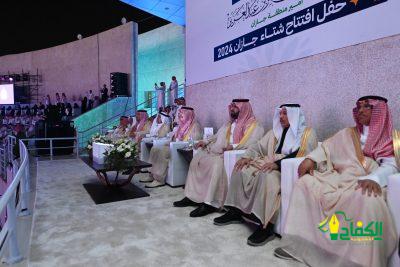 عقب ذلك أعلن سمو أمير منطقة جازان تدشين فعاليات شتاء جازان 24 ، التي تستمر لفترة شهرين بمشاركة العديد من الجهات الحكومية والأهلية إثر ذلك توالت فقرات الحفل التي شملت أغنية الشتاء ” للفرح نرسم دروب ” ، فيما جملت طائرات الدرونز سماء الاحتفال ابتهاجًا بتدشين مهرجان شتاء جازان بصور خادم الحرمين الشريفين وسمو ولي العهد وسمو أمير المنطقة وشعار المهرجان وأبرز المعالم الحضارية والتراثية بجازان، والعبارات الترحيبية بضيوف المهرجان وزوار المنطقة ، وأوبريت أصالة جازان، فقصيدة شعرية لشاعر عيسى الفيفي.