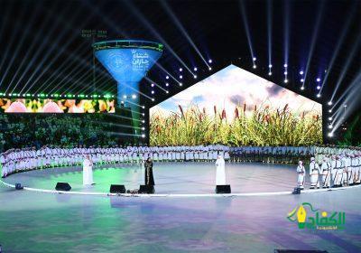 وشاهد سمو أمير جازان والحضور لوحة فنية غنائية تحكي قصة التطور والنمو في منطقة جازان وثقافة وعادات وتقاليد المنطقة وعادات الكرم وحسن الضيافة تحت عنوان ” في جازان تتحقق الامنيات” ، وعروض الفرق الشعبية التي تمثل مختلف محافظات المنطقة.