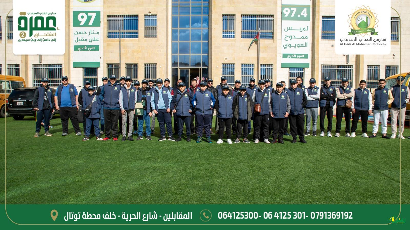 اطلقت مدارس الھدي المحمدية بالمملكة الأردنية الهاشمية رحله العمره الثانيه ” عمره المشتاقين” لطلاب ومعلمين و إداريين مدارس الهدي المحمدي لأداء مناسك العمره ويشارك فيها 65 طالبا ومعلم واداري وتستمر لغايه ال 25 من الشهر الحالي وسيتم تنظيم برنامج ثقافي تعليمي للمشاركين في مكة والمدينة وكان في وداع القافلة الدكتور انس أبو عواد نائب المدير العام للمدارس ويشرف على قافله الطلاب الاستاذ هاني الجليس والأستاذ حسن رحال والاسناذ وعبد الرحمن صدقه ويشرف على قافله المعلمين والاداريين الاستاذ محمد جعفر والأستاذ خليل جميل صرح بذلك القائد خليل جميل.