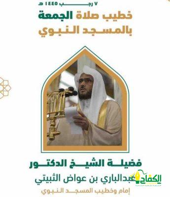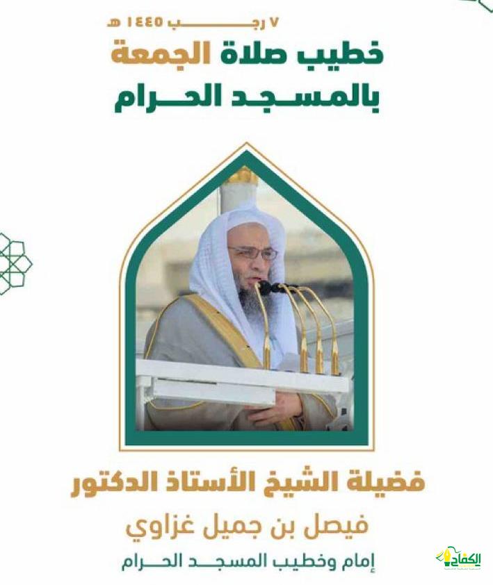 حددت الهيئة العامة لشؤون المسجد الحرام والمسجد النبوي الشريف خطيبا يوم بعد غد الجمعة السابع من شهر رجب الحالي حيث سيكون إمام وخطيب المسجد الحرام فضيلة الشيخ الأستاذ الدكتور فيصل بن جميل غزاوي بينما سيكون إمام وخطيب المسجد النبوي فضيلة الشيخ الدكتور عبدالباري الثبيتي.