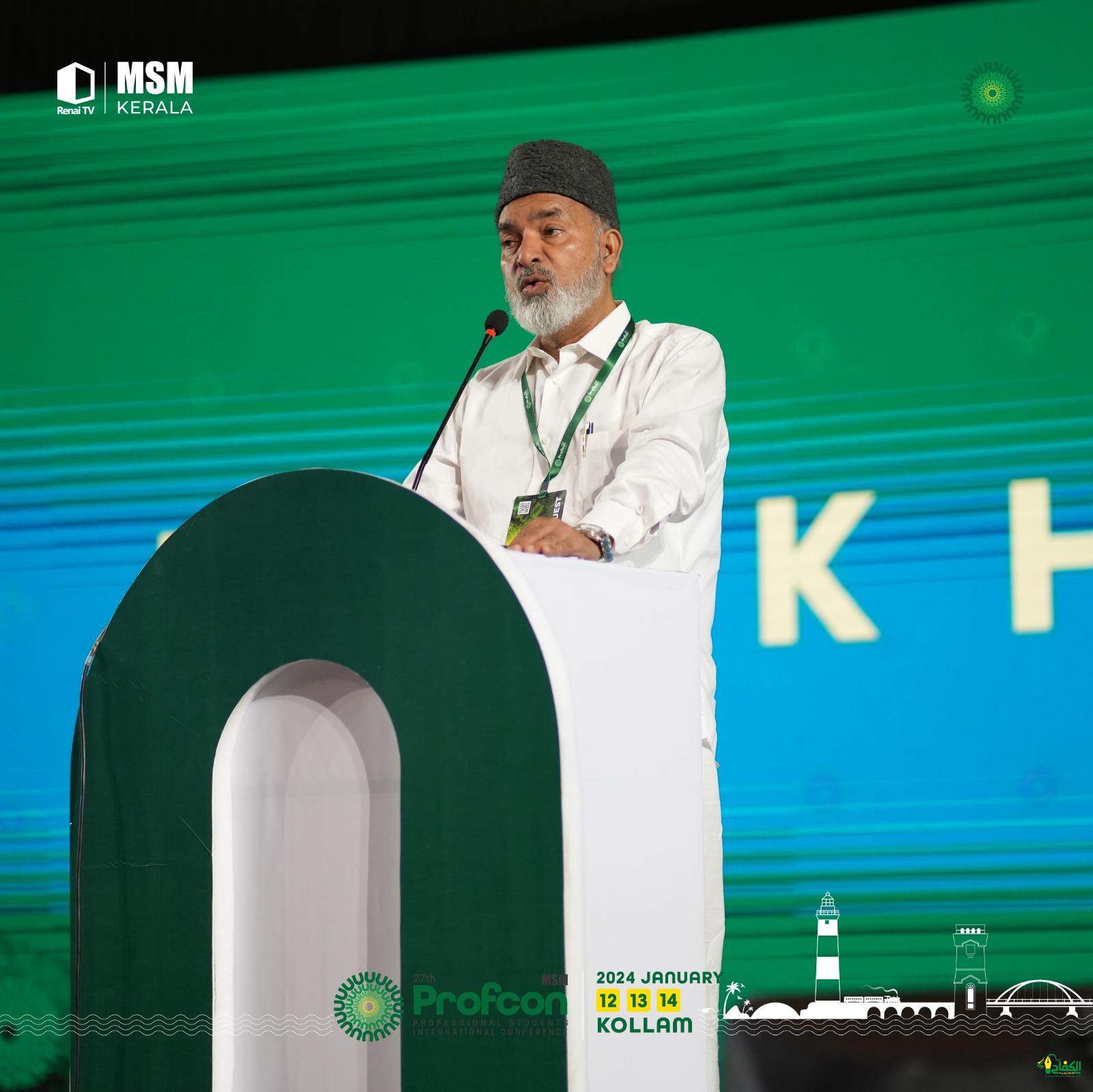 و كان الدكتور حسين أبو بكر يلقي كلماته الافتتاحية لجلسة ” إحترام التعددية ورأي الآخرين” في مؤتمر الطلاب المسلمين الذين يدرسون في الكليات المهنية الاحترافية (Professional colleges) مثل كليات الطب والهندسة ومعاهدها في أقسامها المختلفة في عموم كيرالا.