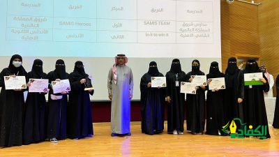 حيث جاء التكريم للفرق المرشحة للتصفيات الوطنية، ” فئة صغار، وفئة كبار ” بنين وبنات، والمدارس والفرق الفائزة ” فئة صغار، وفئة كبار” بنين وبنات، في جائزة أفضل مشروع، وأفضل عرض أدائي، والفريق المثالي، وأفضل خدمة مجتمعية، وأفضل مدرب، كما كرم المدير العام الإدارات المساندة، ولجان التحكيم، والمشاركين والمشاركات، والراعي المستضيف للحفل.