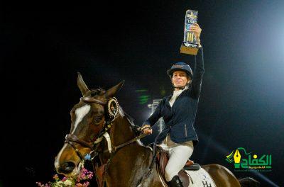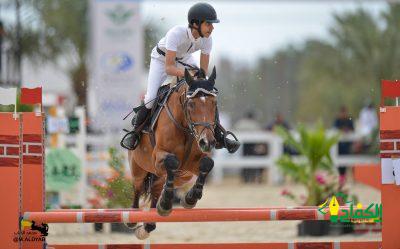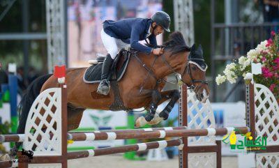 وفي المركز الرابع النرويجية سيسلي هاتلاند، ونجح الفارس السعودي عبدالرحمن البلادي مع حصانه كمباري في احتلال المركز الخامس والصعود الى منصة التتويج التي تواجد فيها فيصل بن غازي المعلم مدير الإيرادات وشبكة الطائرات والذي توج الفائزين مشيدا بالمستوى الفني الرائع الذي قدمه الفرسان في الشوط وقال: