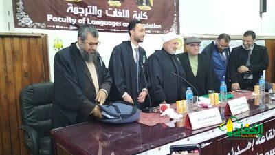 وتكونت لجنة الحكم والمناقشة من: الدكتور عبدالله علي عبدالحميد سمك، أستاذ الأديان والمذاهب بكلية الدعوة الإسلامية، جامعة الأزهر، والدكتور هشام حسن علي، أستاذ اللغويات بقسم اللغة الإنجليزية بكلية الآداب، جامعة بنها، الدكتور محمد سعيد متولي الرهوان، الأستاذ المساعد بقسم الدراسات الإسلامية باللغة الانجليزية، كلية اللغات والترجمة، جامعة الأزهر.