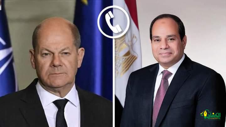 وذكر المستشار أحمد فهمي المتحدث الرسمي باسم رئاسة الجمهورية أن الاتصال تناول الأوضاع الإقليمية واتساع دائرة التوتر في المنطقة، حيث استعرض السيد الرئيس الجهود المصرية المكثفة للتوصل إلى وقف فوري لإطلاق النار في قطاع غزة، والمبادرات المتعلقة بتبادل المحتجزين في هذا الإطار، وذلك بهدف توفير الحماية للمدنيين في القطاع الذين يعانون على مدار عدة أشهر من أوضاع إنسانية مأساوية، مشدداً على ضرورة تحرك المجتمع الدولي للضغط في اتجاه تنفيذ القرارات الأممية ذات الصلة. كما تناول الاتصال الجهود الرامية لوقف توسع نطاق الصراع الذي تلمس المنطقة بوادره، بما سيكون له من عواقب وخيمة على الشرق الأوسط والسلم والأمن الدوليين، وقد أشاد المستشار الألماني بدور مصر البناء في المنطقة، واتفق الجانبان حول أهمية حل الدولتين كأساس لاستعادة السلام والأمن والاستقرار بالمنطقة.