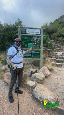 وأوضح الكابتن محمد سنوسي الهوساوي من منطقة المدينة المنورة بأن حبي لرياضة الهايكنج وعشقي للمشي لمسافات طويلة ساعدني على تحقيق هذه الرغبة والسفر الي دولة جنوب أفريقيا وصعود قمة هذا الجبل حيث تمكنت من الصعود والنزول رغم شدة الهواء وافتخر بأنني اول شاب سعودي يقوم بهذه المغامرة ويصعد قمة الجبل في رحلة ساهمت في تنمية ثقافة المشي الهايكنج في تجربة جديدة ولأول مرة واشكر كل من ساهم ودعمني ووقف معي في تنفيذ هذه الفكرة والتجارب التي سوف تعود عليه بالنفع والفائدة ولكافة المشاركين في ممارسة هذه الرياضة السعودية الجميلة واتمنى التوفيق والنجاح الدائم للجميع.