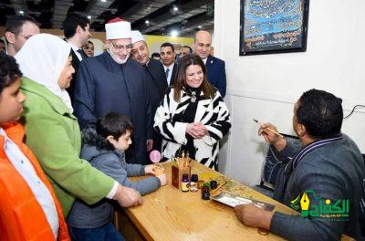 وأثناء جولتها، تفقدت وزيرة الهجرة متحف المخطوطات، ضمن جناح الأزهر الشريف، والذي يتضمن نخبة من الموسوعات التاريخية المتميزة، من بينها مصحف مملوكي نسخ عام 866 هجريا، وعدد من الكتب العريقة التي أعيد ترميمها وإحيائها ضمن جهود الأزهر الشريف، حيث استعرضت محاكاة لترميم واحدة من المخطوطات التراثية، كما تفقدت والدكتور محمد الضويني، وكيل مشيخة الأزهر الشريف، ورشة فنون وإبداعات طلاب الأزهر الشريف وفنون الرسم على القماش والحفر على الخشب والفن التشكيلي.