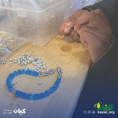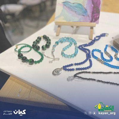 كما أوضحت أن ورشة “صناعة الإكسسوارات بالأحجار الكريمة ” نفذت برعاية الأستاذة مها الدرير ومن مقتنيات زوجها المهندس سامي العلي ـ رحمه الله ـ متمثلة في الأحجار الكريمة والخيوط والإكسسوارات وبعض الأدوات الأخرى التي ساعدت مستفيدات “كيان ” في تنفيذ العمل.