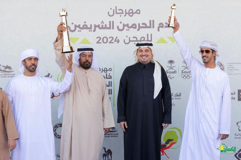 توج صاحب السمو الأمير فهد بن جلوي بن عبد العزيز بن مساعد رئيس مجلس إدارة الاتحاد السعودي للهجن اليوم الجمعة، ملاك الهجن من الإمارات وقطر الفائزين بأولى ألقاب أشواط رموز مهرجان خادم الحرمين الشريفين للهجن في فئة الـ “حقايق”، والذي انطلقت نسخته الأولى أمس الخميس وينظمها الاتحاد السعودي للهجن حتى الـ 18 من شهر فبراير الجاري، على أرض ميدان الجنادرية في مدينة الرياض.