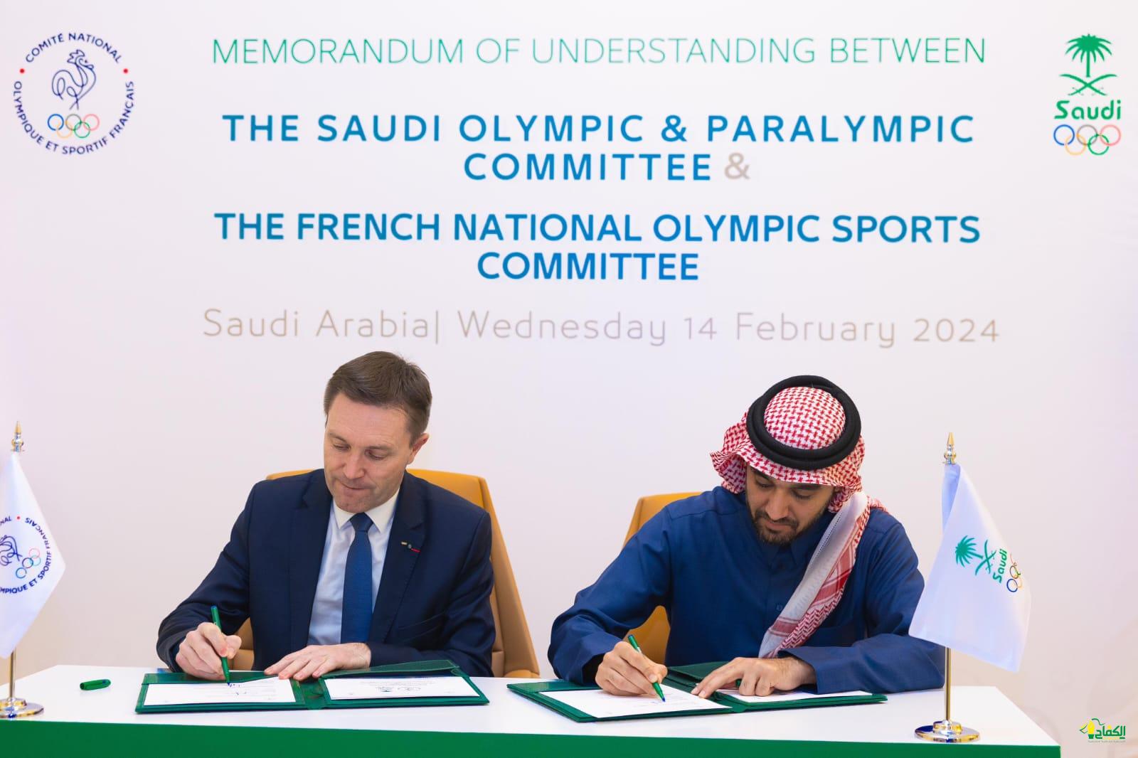 وقع رئيس اللجنة الأولمبية والبارالمبية السعودية الأمير عبدالعزيز بن تركي الفيصل، ورئيس اللجنة الأولمبية الفرنسية السيد/ ديفيد لابارتينت، مذكرة تفاهم بين اللجنتين، في ميدان الجنادرية الرياض؛ بحضور سمو نائبه الأمير فهد بن جلوي بن عبدالعزيز بن مساعد وسعادة الأمين العام الأستاذ عبدالعزيز باعشن.