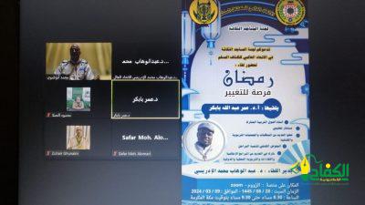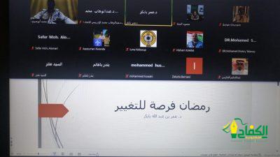 نظم الاتحاد العالمي للكشاف المسلم ممثلا بلجنة المساجد الثلاثة أمسية عبر الزووم تحت عنوان ( رمضان فرصة للتغيير) من إعداد وتقديم الدكتور عمر بن عبدالله بابكر أستاذ أصول التربية المستشار التعليمي والمفوض الكشفي الدولي.