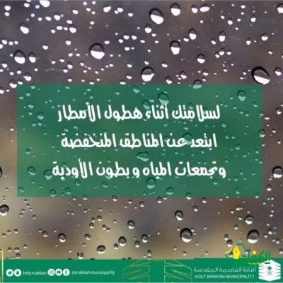 وأكدت الأمانة ، بأنَّها كثّفت عدد الفرق والمعدات المخصصة لإزالة مخلفات الأمطار، ومتابعة أماكن تجمعات المياه، وذلك بالتنسيق المسبق مع الجهات ذات العلاقة . وتأتي تنبيهات أمانة العاصمة المقدسة – التي بُثَّت عبر القنوات الرسمية للأمانة ووسائل التواصل الاجتماعي- متكاملةً مع جهودها الميدانية الهادفة إلى المحافظة على سلامة الأرواح والممتلكات ومعالجة أي تجمعات لمياه الأمطار في نطاق جميع بلديات مكة المكرَّمة وضواحيها، إلى جانب مباشرتها الفورية للبلاغات الواردة عبر نظام “بلدي”.