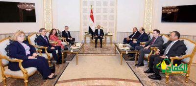 وأضاف المتحدث الرسمي أن اللقاء تناول الأوضاع الراهنة في قطاع غزة، حيث تم استعراض آخر مستجدات الجهود المشتركة للوساطة بهدف التوصل إلى وقف لإطلاق النار وتبادل المحتجزين، وقد شدد السيد الرئيس في هذا الصدد على ضرورة الوقف الفوري لإطلاق النار، مشيراً إلى ما يتعرض له القطاع وسكانه من كارثة إنسانية ومجاعة تهدد حياة المدنيين الأبرياء، ومحذراً من العواقب الخطيرة لأي عملية عسكرية في مدينة رفح الفلسطينية، كما شدد السيد الرئيس على ضرورة التحرك العاجل لإنفاذ الكميات الكافية من المساعدات الإنسانية للقطاع، مؤكداً ضرورة فتح آفاق المسار السياسي من خلال العمل المكثف لتفعيل حل الدولتين، وإقامة الدولة الفلسطينية المستقلة على حدود ١٩٦٧ وعاصمتها القدس الشرقية.