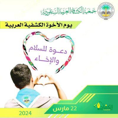 تحتفي جمعية الكشافة العربية السعودية يوم غدٍ الجمعة، بيوم الأخوة الكشفية العربية الذي يصادف الـ 22 من مارس من كل عام، الموافق ذكرى تأسيس جامعة الدول العربية عام 1945، حيث اختير ذلك التاريخ عرفاناً بالدور الرائد للجامعة في الاعتراف بالمنظمة الكشفية العربية ودعمها المستمر للحركة ترسيخاً لعرى الأخوة والوحدة العربية.