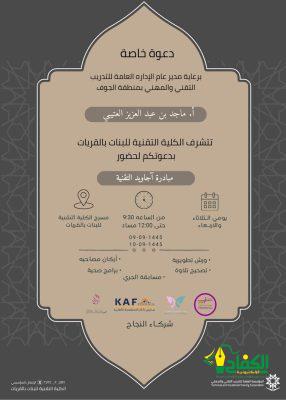 برعاية مدير عام التدريب التقني والمهني بمنطقة الجوف الأستاذ ماجد بن عبدالعزيز العتيبي نظمت الكلية التقنية للبنات بالقريات مبادرة بعنوان “آجاويد التقنية” بمشاركة العديد من الفعاليات الثقافية والدينية والترفيهية في شهر الخير والبركة رمضـان المبارك.