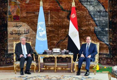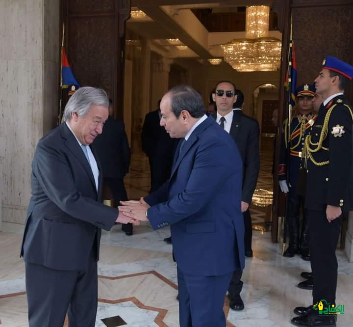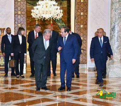 وقد ثمن السيد الرئيس في هذا الصدد مواقف السكرتير العام من الأزمة الجارية، وحرصه على الالتزام بمبادئ القانون الدولي والقانون الدولي الإنساني، ونشاطه المستمر لحث المجتمع الدولي على التحرك لإنهاء الحرب وحماية المدنيين، مؤكداً ضرورة اضطلاع مجلس الأمن بمسئولياته في ذلك الصدد، ومشدداً على خطورة قطع بعض الدول دعمها لوكالة غوث وتشغيل اللاجئين الفلسطينيين “الأونروا”، فيما يعد عقاباً جماعياً للفلسطينيين الأبرياء.
