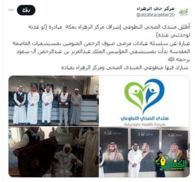 أطلق المنتدى الصحي التطوعي بإشراف من مركز الزهراء الاجتماعي بمكة المكرمة مبادرة (لو عدته لوجدتني عنده) عبارة عن عدد من الزيارات للمرضى من ضيوف الرحمن المنومين بمستشفيات العاصمة المقدسة بدأت الزيارة بمستشفى المؤسس الملك عبدالعزيز بمكة شارك فيها متطوعي المنتدى الصحي ومركز الزهراء بقيادة أعضاء فريق الصحي النفسي التطوعي، كما شارك فيها رجالا ونساء وشبابا وأطفالا.