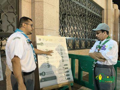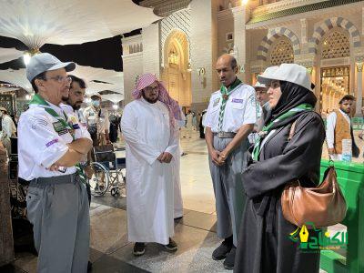 جاء ذلك خلال جولة قام بها أمس رافقه فيها المدير العام للتعليم بمنطقة المدينة المنورة، المشرف على الخدمات الكشفية التي تقدم لزائري المسجد النبوي الشريف الأستاذ ناصر بن عبدالله العبدالكريم شهد خلالها الجهود والخدمات التطوعية التي يقوم بها الكشافة من مختلف قطاعات الجمعية في المسجد النبوي مع الهيئة العامة للعناية بشؤون المسجد النبوي، ووزارة الحج والعمرة، وهيئة تطوير منطقة المدينة المنورة ، وقوات أمن الحرم، والإدارة العامة للمرور، كما أطلع على مراكز إرشاد الزوار، ونقاط الخدمة وآلية تسجيل الساعات التطوعية، والجهود المبذولة في الساحات الخارجية.