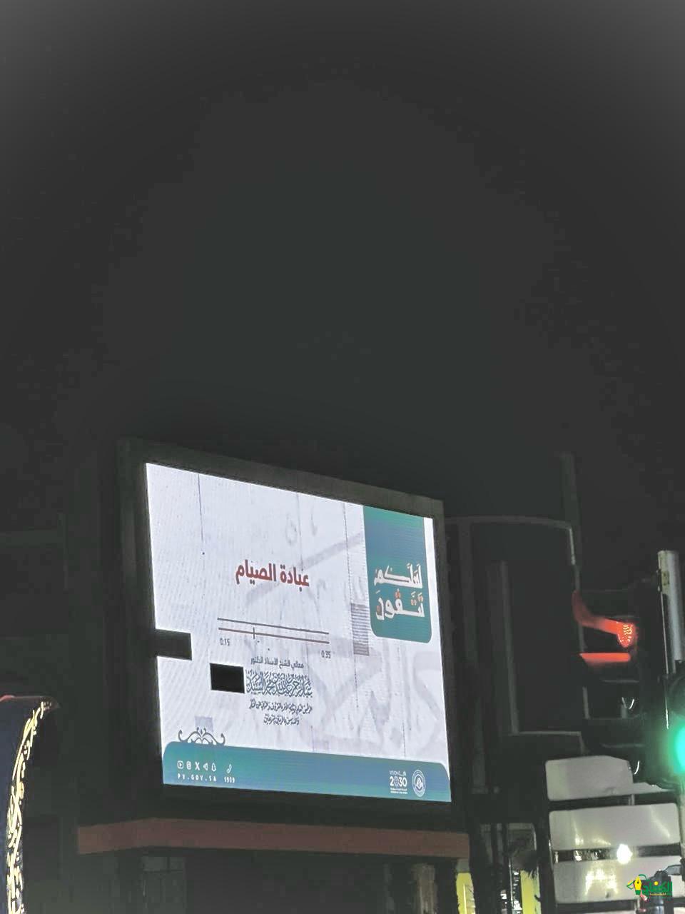 من جانبها فعلت هيئة الأمر بالمعروف والنهي عن المنكر بمحافظة تربة المحتوى التوعوي لبرنامج “لعلكم تتقون” عبر الشاشات الرقمية في الأماكن العامة، و يهدف البرنامج إلى التذكير بفضل صيام وقيام هذا الشهر الفضيل وبيان الأحكام الشرعية المتعلقة به.