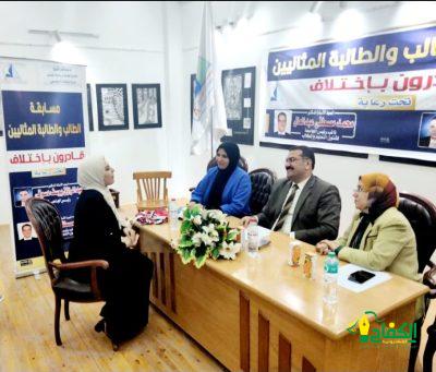 كما أسفرت نتائج مسابقة الطالبة المثالية عن فوز الطالبة أسماء خميس علام كلية الألسن بالمركز الأول، والطالبة سهيلة السيد مصطفى كلية الآداب مركز أول( مكرر)، وفازت بالمركز الثاني الطالبة هدى عبد الرازق عبد الحميد كلية التجارة، والطالبة ميرنا سامي خضر كلية الآداب مركز ثاني(مكرر)، وجاءت في المركز الثالث الطالبة منى طه أحمد شلبي كلية الآداب، والطالبة منار وجدي بخيت كلية التمريض مركز ثالث(مكرر).