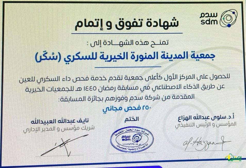 في إنجاز مشرف يعزز مكانة الجمعيات الخيرية في المملكة، تألقت جمعية المدينة المنورة الخيرية للسكري (سُكّر) بتحقيق المركز الأول على مستوى جمعيات المملكة في فحص الشبكية. وتمثل هذه الفوز جائزة مقدمة من شركة “سدم”، التي سخرت جهودها لدعم هذه البادرة الإنسانية.حيث قدمت للجمعية 250 فحص مجاني يخدم مرضى السكر، وهو ما أثنى عليه الكثير من المرضى والمجتمع المحلي. يأتي هذا الإنجاز كجزء من الجهود المتواصلة التي تبذلها الجمعية في مجال الرعاية الصحية وتوعية الناس بأهمية الكشوفات الدورية.