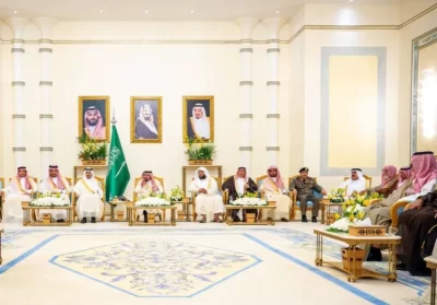 وتناول الجميع طعام إفطار العيد على مائدة سموه حضر الاستقبال صاحب السمو الملكي الأمير سلطان بن فيصل بن مشعل بن سعود بن عبدالعزيز, وصاحب السمو الملكي الأمير تركي بن فيصل بن مشعل بن سعود بن عبدالعزيز، وعدد من مسؤولي المنطقة من مدنيين وعسكريين.