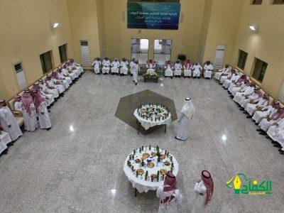 حيث التقى المدير العام للتعليم بمنطقة الجوف الأستاذ محمد بن علي القحطاني، مع المساعدين ومديري الإدارات والأقسام والموظفين وتبادلوا التهاني في جو سادته الألفة والمودة، وتناول الجميع المرطبات والحلويات في حفل بهيج.