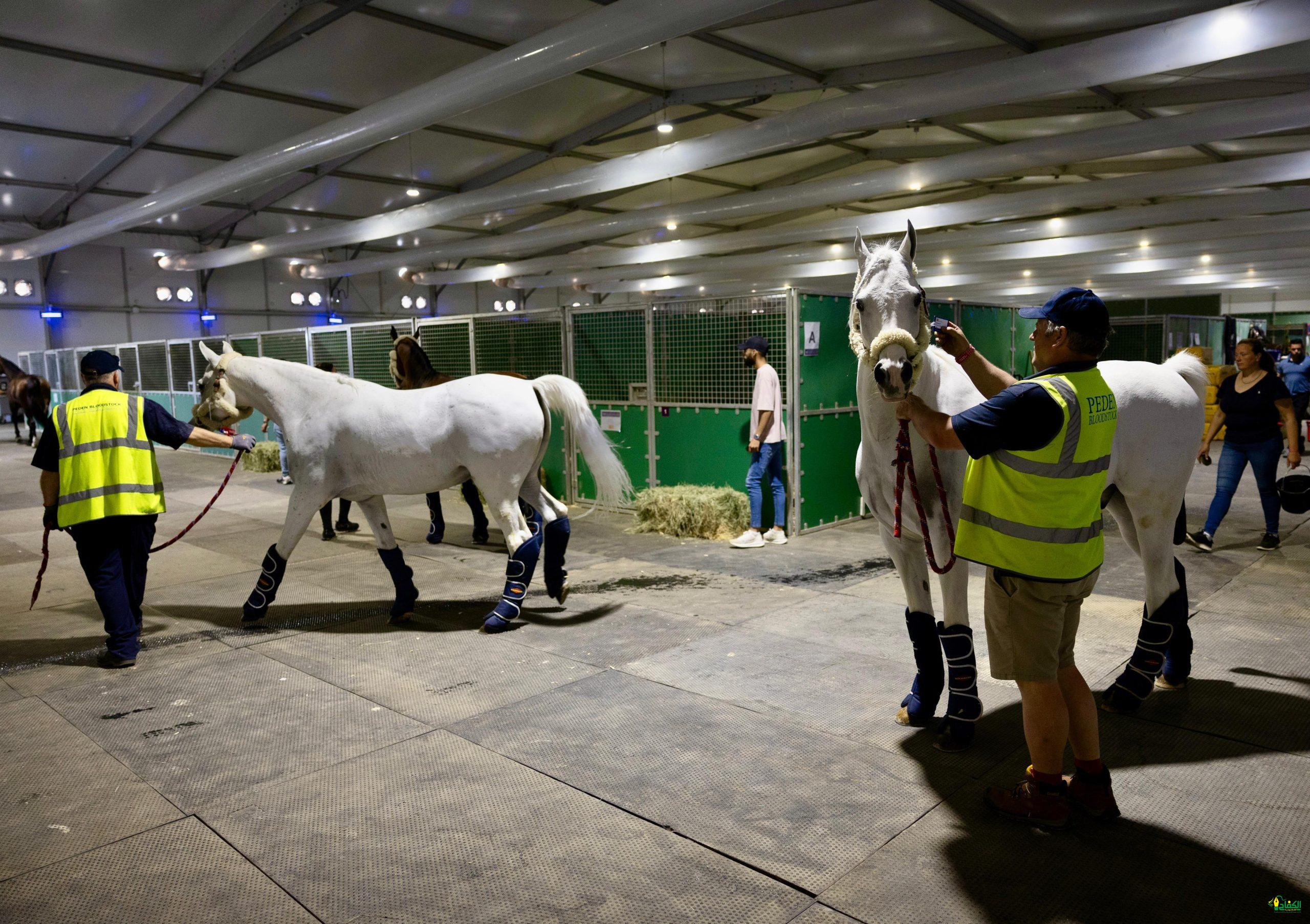 وتم استقبال الخيل المشاركة ونقلها عبر شاحنات مخصصة الى الاسطبلات الخاصة بها في مقر البطولة بمركز الرياض الدولي للمعارض والمؤتمرات، حيث تعد من أغلي الخيول في العالم وتشارك برفقة نخبة فرسان العالم المشاركين في البطولة.