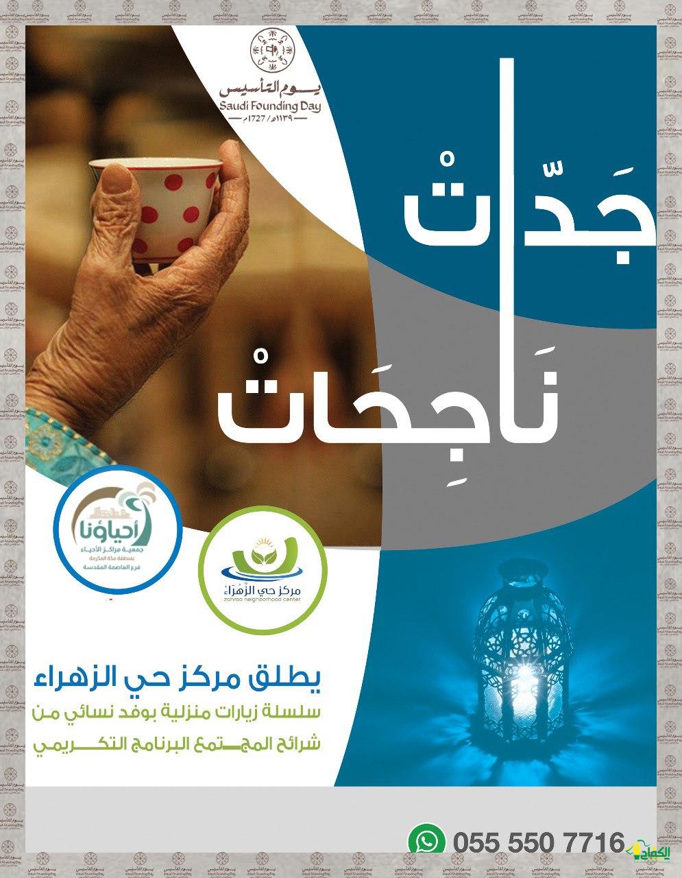 ضمن المبادرات التي يقوم بها مركز الزهراء الاجتماعي بمكة-المكرمة وخلال أيام عيد الفطر المبارك ومناسباته وأيامه السعيدة، تم تنظيم مبادرة جداتنا الناجحات وحكت الجدات حكايات العيد ماضي وحاضر للأجيال القادمة.