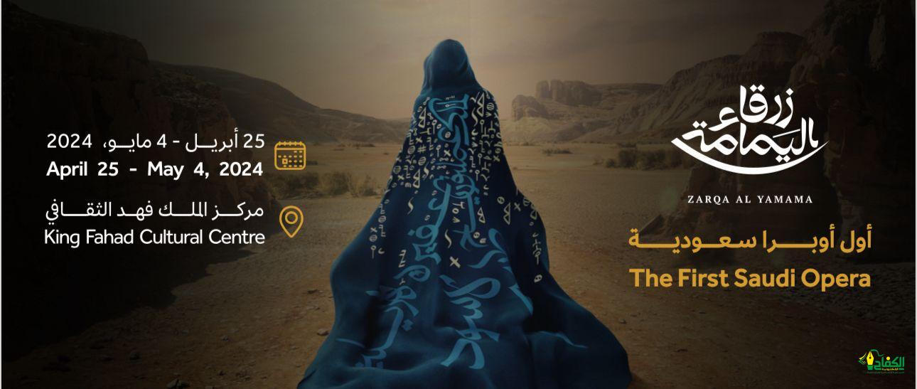وتُعرض أول عروض أوبرا زرقاء اليمامة في يوم 25 أبريل 2024 وتستمر إلى يوم 4 مايو 2024 بواقع 10 عروض في 8 أيام، وبدءًا من الآن؛ لدى الجميع فرصة الاستمتاع بهذه الظاهرة الثقافية المحورية في تاريخ الحراك الفنّي في المملكة عبر الحصول على تذاكرهم من خلال المنصة المخصصة عبر الرابط: https://dc.moc.gov.sa/home/event-tickets/208/zarqaa-al-yamama-opera .