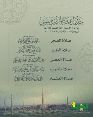 أصدرت رئاسة الشؤون الدينية بالمسجد الحرام والمسجد النبوي الجدول الأسبوعي لأئمة المسجد الحرام والمسجد النبوي