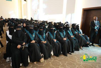 إثر ذلك، ألقت الخريجة بروق المطيري، كلمة نيابة عن زملائها الخريجين والخريجات، تحدثت فيها عن سعادة الخريجين والخريجات والوصول إلى مرحلة التخرج التي يبدأون بالمشاركة في تنمية وخدمة وطنهم ويكون مشاركين فاعلين في بناءه ونهضته، مشيرة إلى المؤسسة ساهمت في بناء شخصية الخريجين وتهيئتهم لممارسة التخصصات التقنية والمهنية وتعزيز مهاراتهم وفق احتياجات سوق العمل بما يحقق مستهدفات رؤية السعودية 2030.