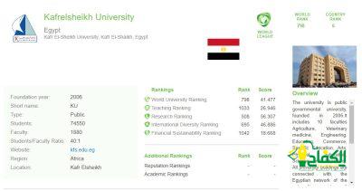 وأشار الدكتور عبد الرازق دسوقي رئيس جامعة كفر الشيخ، أن هذا التصنيف يقيس أداء الجامعات فى أربعة مجالات رئيسة وهي: التدريس، والبحث العلمي ، والتنوع الدولي، والاستدامة. حيث جاء ترتيب جامعة كفر الشيخ في مجال البحث العلمي المركز الاول محليًا و 508 عالميًا، وفي مجال التدريس حققت الجامعة المركز 13 محليًا و 1033 عالميًا، وفي مجال التنوع الدولى حققت الجامعة المركز الثامن محليًا و 695 عالميًا، وفي مجال الإستدامة جاءت الجامعة في المرتبة 13 محليًا و 1042 عالميًا، وقدم رئيس الجامعة الشكر والتقدير لأعضاء هيئة التدريس على ما وصلت إليه الجامعة من التفوق والجهد المتميز المبذول في النشر الدولي.