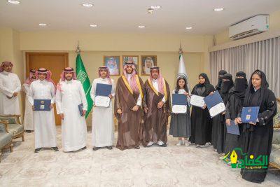نيابةً عن صاحب السمو الملكي الأمير فيصل بن نواف بن عبدالعزيز أمير منطقة الجوف، كرّم صاحب السموّ الملكيّ الأمير متعب بن مشعل بن بدر بن سعود بن عبدالعزيز نائب أمير منطقة الجوف في مكتبه اليوم، الفائزين والفائزات بجائزة “المواطنة المسؤولة”، التي ترعاها مؤسسة جائزة الأميرة صيتة بنت عبدالعزيز للتميز في العمل الاجتماعي من تعليم المنطقة، يرافقهم أولياء أمورهم.