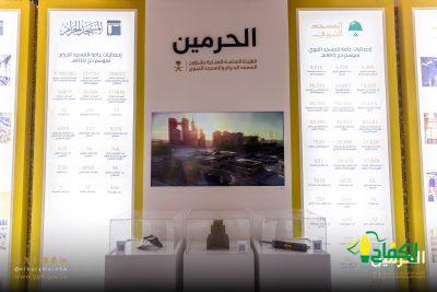 وعمل المعرض المصاحب للهيئة في المنتدى على استعراض إحصائيات عامة تُبرز أعمال البناء والتغييرات التي تمت بمشاريع الحرمين الشريفين وما توالت من خلالها لفتح مساحات تتسع لاستقبال أعداد مليونيه من الزوار والعمار والحجاج, وبث محتويات رقمية تحتوي على نبذه من المشاريع المقامة بالحرمين لبيان أهمية تلك الأعمال على مدى توفير المزيد من الخدمات والتجهيزات للتسهيل على ضيوف الرحمن لأداء عبادتهم بكل يسر وسهولة تحقيقاً لتطلعات القيادة الرشيدة حفظها الله.