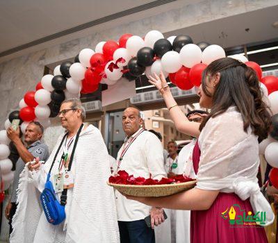 ونظمت رحلات ومنافع من خلال مركز الخدمة 220 حفل استقبال خاص لهم اشتمل على تقديم القهوة السعودية والورود والهدايا والوجبات وماء زمزم والعبارات الترحيبية.