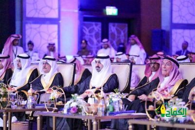 بعدها ألقى الدكتور مسعد بن عيد العطوي كلمة قدم من خلالها ونيابة عن المكرمين في مجالات التميز للجائزة الشكر والتقدير لسمو أمير منطقة تبوك، قائلاً؛” لقد غمرتنا ياسمو الأمير ومنذ أمد بعيد بسحائب تلو السحائب من التقدير والتكريم، والبذل السخي والمتواصل لتشجيع المتفوقين وتحفيزِهم نحو التميز والابداع الذي كان له الأثرُ البارزُ في تحقيق أبناء المنطقة لمراكز متقدمة على كافة المستويات، معرباً عن فخره بما وصلت إليه المنطقة من تقدم وأزدهار بفضل الله أولاً ثم بفضل ولاة أمر هذه البلاد الذين حولوا الأرض البيداء إلى مدائن تزدهر بعمرانها، لترتفع معها العقول في شتى المجالات، وتزداد الحضارة فيها، حتى أضحت مثلاً عالمياً للتطور والنماء في ظل قيادة خادم الحرمين الشريفين الملكِ سلمان بن عبدالعزيز وسمو ولي عهده الأمين -حفظَهما اللهُ -.