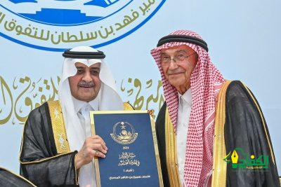 بعد ذلك كرّم سموه الفائزين والفائزات في الجائزة، ففي مجال التميز بالإبداع والابتكار، كرم سموه الدكتور مسعد بن عيد العطوي نظير إسهاماته في العديد من المجالات الإبداعية العلمية والثقافية، حيث يُعد أحد أبرز أدباء المملكة العربية السعودية المعاصرين. وصدر له مجموعة من المؤلفات التي تُعنى بتاريخ منطقة تبوك قديمًا وحديثًا، كما صدرت له العديد من الإصدارات في النقد الأدبي وبلغ عدد مؤلفاته (٣٤) مؤلفاً ، وفي مجال الخدمة المجتمعية ( أفراد )، كرم سموه صبيح بن طاهر المصري نظير إسهاماته في العديد من المجالات المجتمعية والخيرية إلى جانب إسهاماته في القطاع التعليمي والصحي بالمنطقة، كما كرم سموه في مجال التميز بالخدمة المجتمعية ( منشآت )، أوقاف العرادي الخيرية ، نظير مساهمتهم المجتمعية المتميزة في مدينة تبوك ومحافظاتها والموجهة لتنمية المجتمع والخدمة المجتمعية والقطاع غير الربحي، ثم كرم سموه الفائزين والفائزات في مجال التفوق العلمي البالغ عددهم ( 34 ) فائزاً وفائزة، متمنياً سموه لهم دوام التوفيق والسداد، في خدمة دينهم ثم مليكهم والوطن.