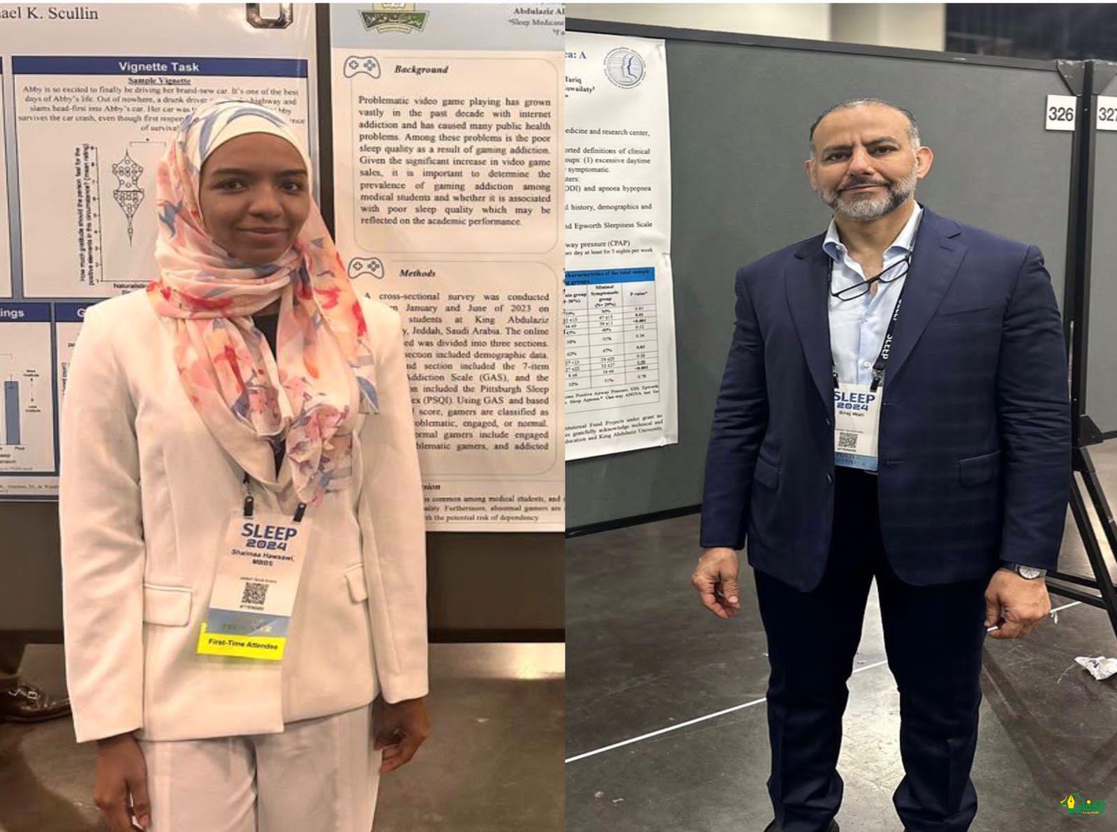 بهدف رصد تأثير إدمان ألعاب الفيديو وعلاقته برداءة النوم لدى طلاب الطب بجامعة الملك عبدالعزيز بجدة قدم كل من البروفيسور سراج عمر ولي استشاري الأمراض الصدرية واضطرابات النوم مدير مركز طب النوم بجامعة الملك عبدالعزيز ، والدكتورة شيماء عبدالرزاق هوساوي طبيبة الأسرة والمتدربة في مركز طب و بحوث النوم في زمالة طب النوم ،نتائج دراسة علمية أشرفا عليها وأجراها مجموعة من طلبة الطب وتضمنت بحث تخرجهم وهم: فيصل أحمد دخيل الله الغامدي، عبدالله أبو سليمان ،محمد بامطرف ، فيصل أحمد غانم الغامدي ،البراء العصيمي ، عبدالعزيز السلمي، عمر باموسى ، وذلك في فعاليات مؤتمر النوم 2024 الذي أختتم أعماله بنجاح في هيوستن.