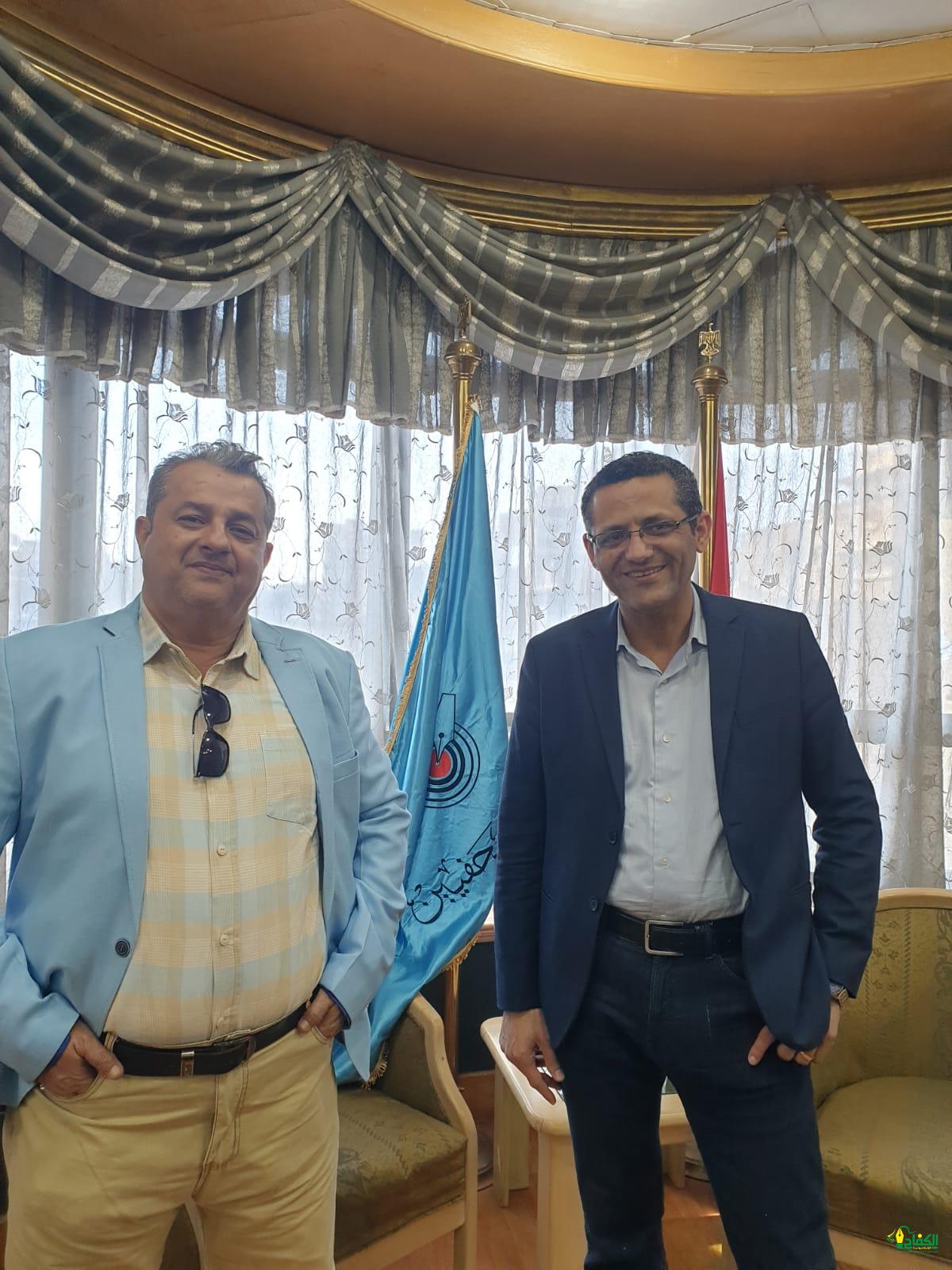 أستضافت نقابة الصحفيين المصرية سعادة المستشار الإعلامي السعودي ومحرر صحيفة الكفاح نيوز بجدة / ماهر محمد عبدالوهاب في زيارة خاطفة قام بزيارة سعادة نقيب الصحفيين المصريين الأستاذ / ( خالد البلشي ) وكان في إستقبال الضيف الصحفي القدير الأستاذ أحمد بدر نصار هذا وتم تبادل الأحاديث الودية والتعارف فيما بينهما وطرح بعض الأفكار والمبادرات المهنية ذات النفع المشترك وايضا” بعض الأمور الشائكة التي تواجه جل الصحفيين في الميدان الصحفي وفي نهاية الزيارة تم إلتقاط الصور التذكارية وتوديع المستشار الإعلامي ماهر عبدالوهاب.