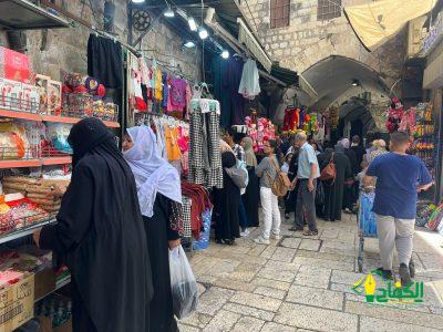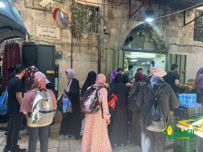 وقال مدير الجمعية أ. يزيد جابر “انه في اليوم الاول من اسبوع التسوق في القدس شد الرحال ما يقارب 85 حافلة من اهلنا في الداخل الفلسطيني الى مدينة القدس حتى ننعش الاقتصاد والحركة التجارية في اسواق البلدة القديمة.”