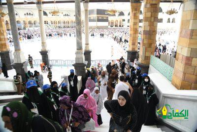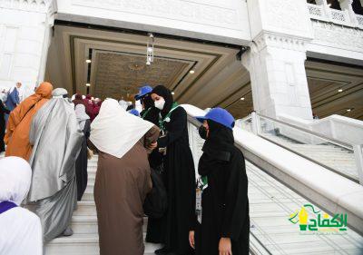 تواصل فتيات الكشافة السعودية المشاركات في معسكرات الخدمة العامة التي تُقيمها جمعية الكشافة العربية السعودية لخدمة حجاج بيت الله الحرام مع قوة أمن الحرم المكي مهمة إدارة الحشود، من خلال ما يقدمونه من خدمة إنسانية بالمسجد الحرام بتنظيم الطائفين وتوجيههم إلى أماكن الصلاة والتي تتركز في المصليات النسائية من أجل الدخول إليها والخروج منها بسلاسة، وكذا إرشاد التائهين، ومساعدة كبار السن وذوي الاحتياجات الخاصة.
