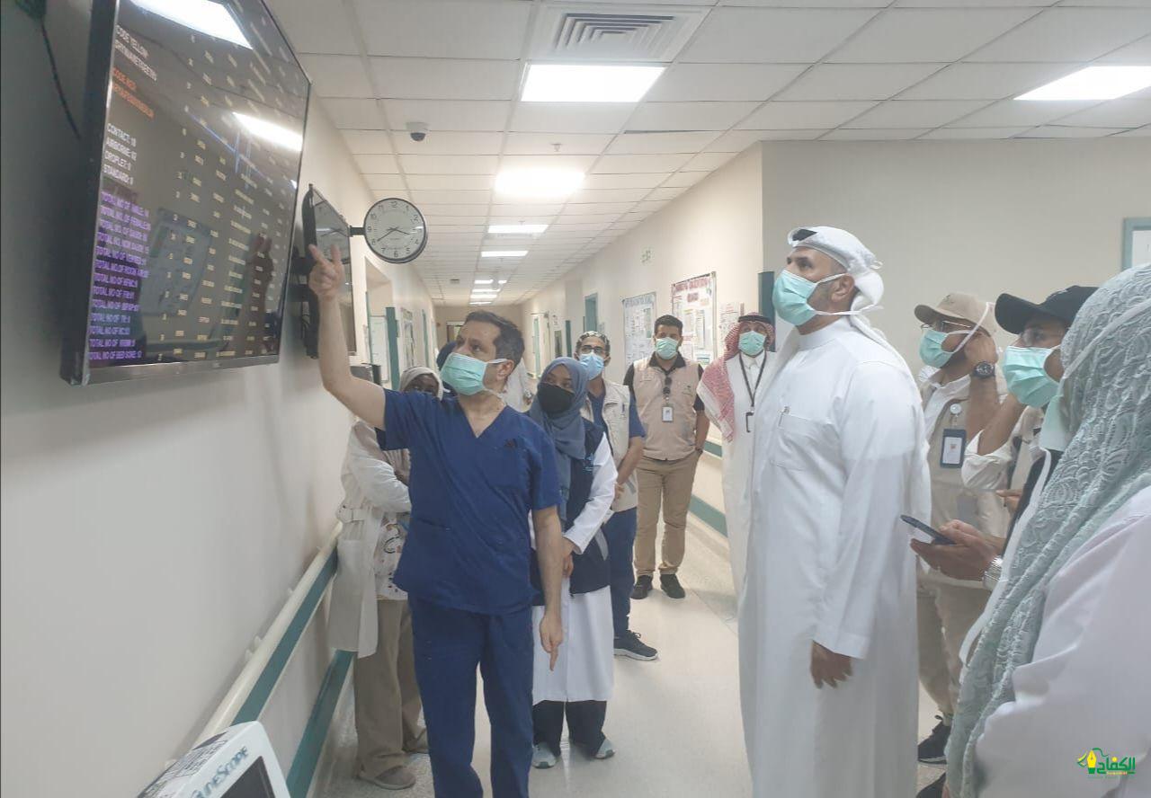 حيث زار مستشفى الملك عبدالعزيز ومستشفى شرق جدة، واطّلع على سير العمل في عددٍ من أقسام المستشفى، كما استمع إلى شرح مفصل من المسؤولين حول الإجراءات المتبعة.