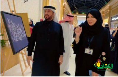 في بهو المجمع بأصوات شجية وحضر الحفل الشيخ أحمد بن ناصر العبيكان واثنى كثيراً على اللوحات المعبرة عن هذا الحدث