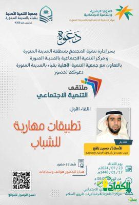 أكد – الاستاذ ماهر الفايدي مدير مركز التنمية الإجتماعية بالمدينة المنورة ،أن الملتقى الأول لمهارات الشباب الذي أقيم مساء أمس الثلاثاء ١٧-١-١٤٤٦،بنادي التنمية الاجتماعية بالشراكة مع جمعية التنمية الأهلية بقباء ،هو باكورة الملتقيات تتبعها ملتقيات أخرى ،وسوف يقام اليوم الأربعاء الملتقى الثاني تحت مسمى مهارات قيادية ويوم الأحد والأثنين والثلاثاء القادمان سيكون هناك ملتقيات أخرى ،مشيرا الفايدي أن مركز التنمية الإجتماعي بالمدينة ،يقدم العديد من البرامج والانشطة خلال هذا العام ،لخدمة وتنمية المجتمعي المدني ،وأختتم حديثة بالشكر والثناء لصحيفة الكفاح نيوز.