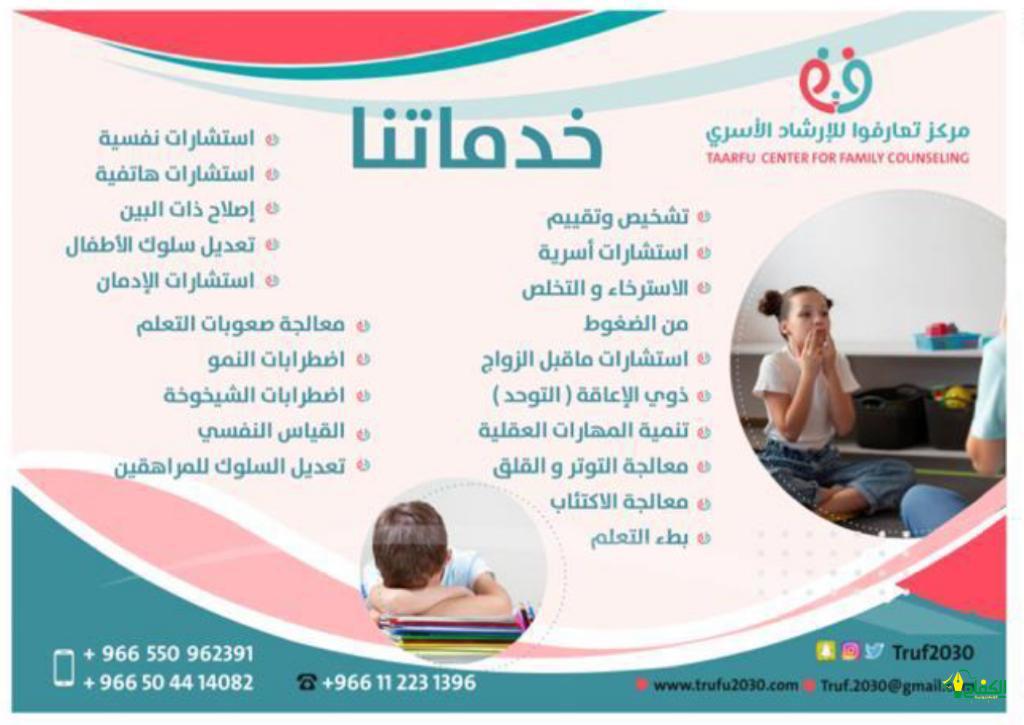 داعية الاباء والأمهات إلى التعقل والتريث قبل الإقدام على الطلاق الجدير بالذكر أن مركز تعارفوا للإرشاد الأسري يقدم باقة للإصلاح الأسري عبارة عن أربع جلسات تمكن الأسرة من أخد الوقت الكافي للحديث عن المشكلة وتمكن المرشد الأسري من معرفة التفاصيل والاستماع لكافة الأطراف واتخاذ القرار المناسب بأذن الله.