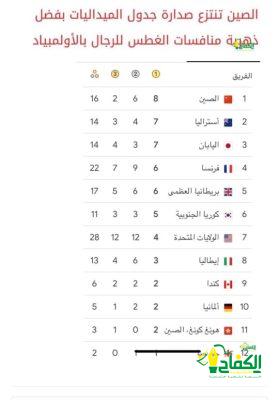اشتعلت المنافسة في أعلى سلم الترتيب بين القوتين العظيمتين رياضيا الصين والولايات المتحدة الامريكية التي كشرت عن أنيابها وقفزت من المركز السابع إلى المركز الثاني بفضل لاعبة الجمباز سيمون باينلز التي حققت ميداليتها الذهبية السادسة في هذه الدورة وأصبحت أمريكا تطارد التنين الصيني الذي يتصدر جدول الترتيب ولها 24 ميدالية منها 11 ميدالية ذهبية مقابل 37 ميدالية لأمريكا منها 9 ذهبيات وقد وصل عدد الدول التي أحرزت ميداليات الى 50 دولة.