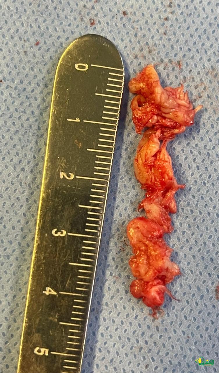 وبعد إجراء الفحوصات اللازمة، تبيّن وجود انزلاق غضروفي بين الفقرة القَطنية الخامسة والعَجُزية الأولى وقرر الفريق الطبي إجراء عملية جراحية بعد أن فشلت المسكنات والعلاج الطبيعي في النتائج المرجوة في تخفيف الألم، وبعد تنويم المريضة أُجريت لها عملية إزالة الغضروف الضاغط على الأعصاب باستخدام تقنية التدخل المحدود بالمنظار، عبر فتحة جراحية صغيرة لا تتجاوز 2 سم، وخرجت المريضة من المستشفى بعد يوم واحد من العملية وهي في حالة صحية جيدة.