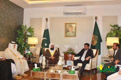 استقبل حاكم إقليم السند بجمهورية باكستان الإسلامية السيد محمد كامران خان تيسوري إمام وخطيب المسجد النبوي الشريف الشيخ الدكتور صلاح بن محمد البدير اليوم السبت الموافق السادس من شهر صفر لعام 1446هـ بمقر حاكم إقليم السند بالعاصمة اسلام آباد بحضور سفير خادم الحرمين الشريفين لدى باكستان الاستاذ نواف بن سعيد المالكي وذلك ضمن جدول برنامج زيارات أئمة الحرمين الذي تنفذه وزارة الشؤون الإسلامية والدعوة والإرشاد.