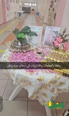 وفي جو مليء بالسعادة والبهجة إستقبل مديري ومديرات المدارس المعلمين والمعلمات بأنواع من الحلويات والبخور والورد.